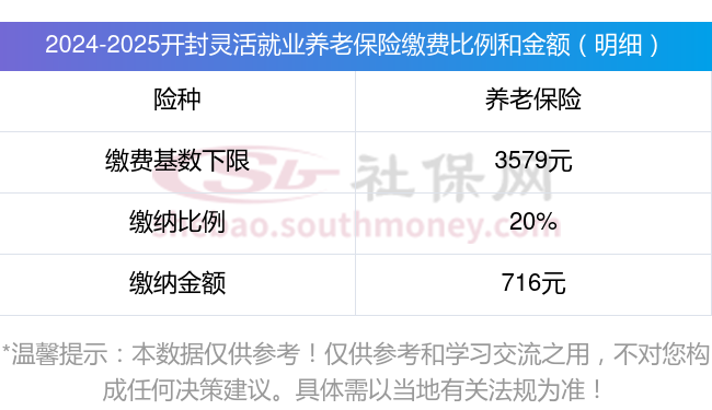 据新社通app显示,2024-2025年开封灵活就业人员养老保险的缴费标准: