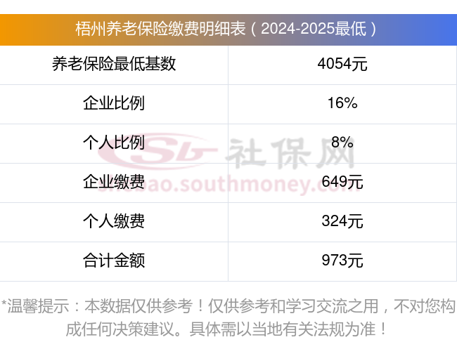 查阅新社通app显示,梧州2025年梧州社保养老保险缴纳基数及比例如下:
