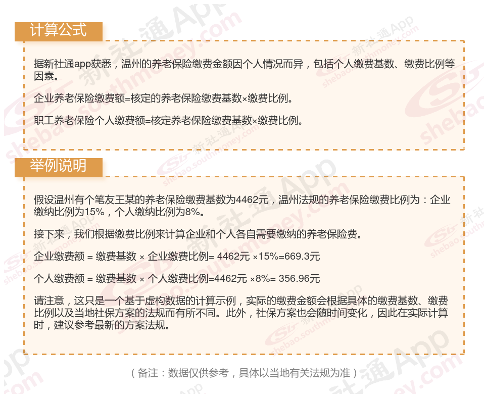 据新社通app显示,温州职工养老缴费基数是多少,2024-2025年温州养老保险基数明细如下: