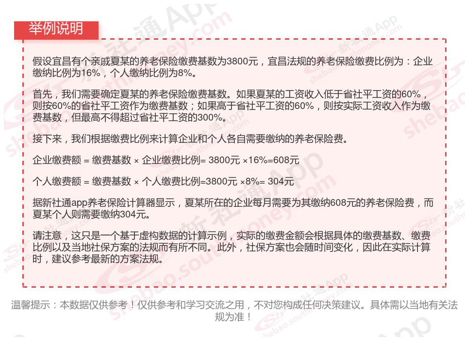 据新社通app显示,宜昌职工养老缴费基数2023-2025年最新标准是多少,宜昌养老保险基数明细如下: