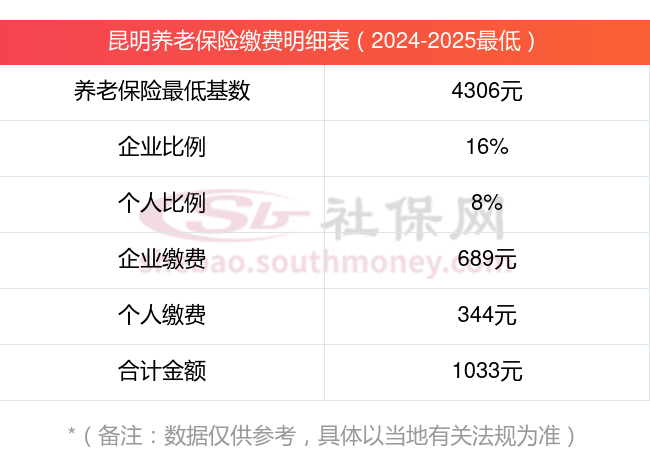 昆明假设某职工养老保险的缴费基数为4306元,单位缴费比例为16%,个人缴费比例为8%。