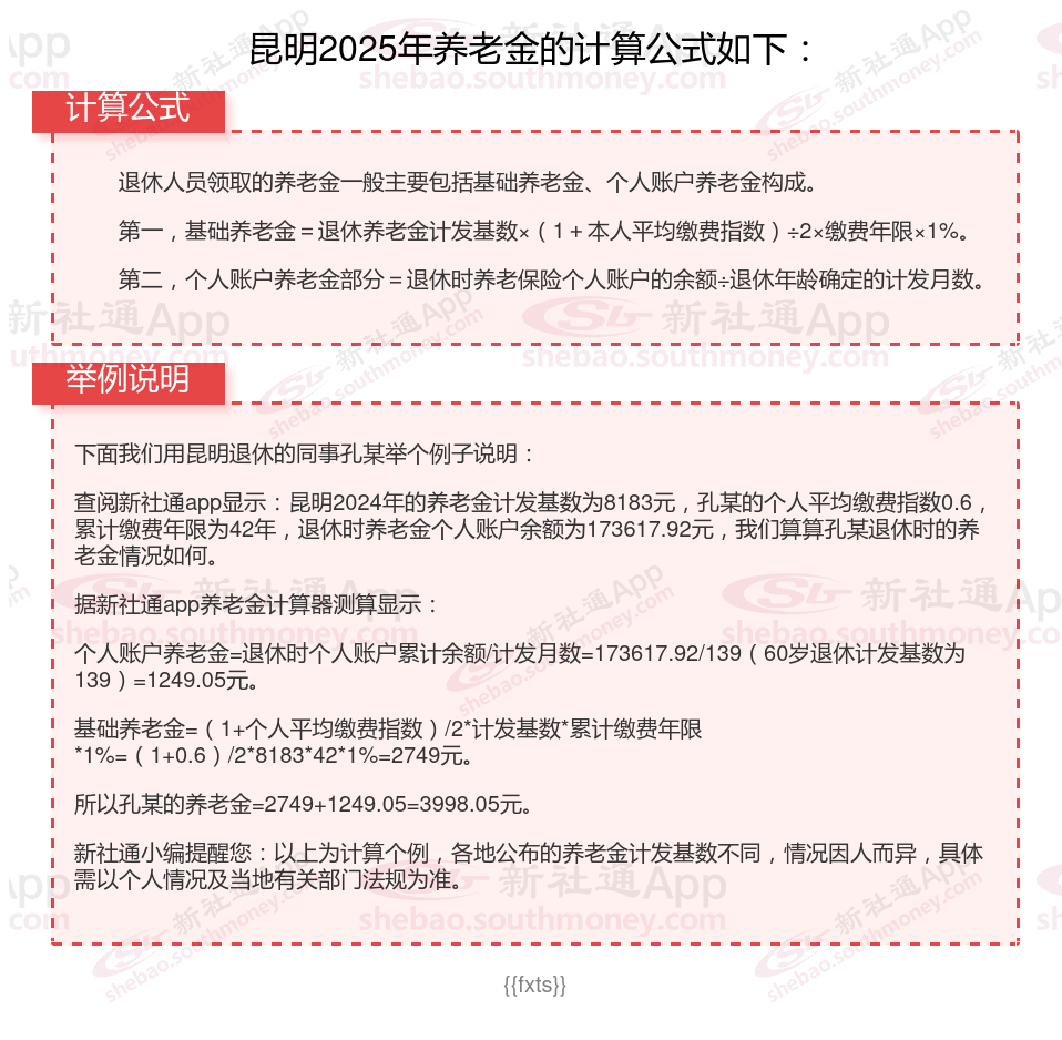 昆明养老金计算公式2025年计算方法(在线计算器)