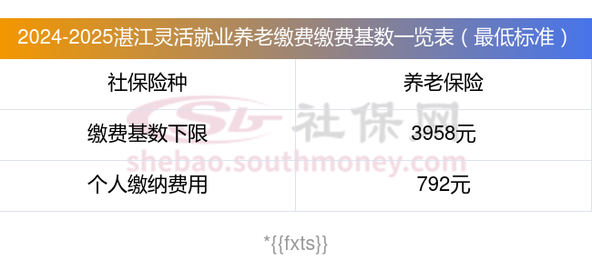 据新社通app显示,2024-2025年湛江灵活就业人员养老保险的缴费标准是根据缴费基数来确定的:
