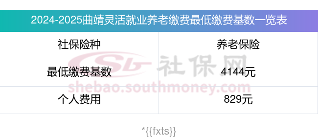 据新社通app显示,曲靖灵活就业养老保险最低缴费基数为:4144元;个人的缴费比例分别为:20%;