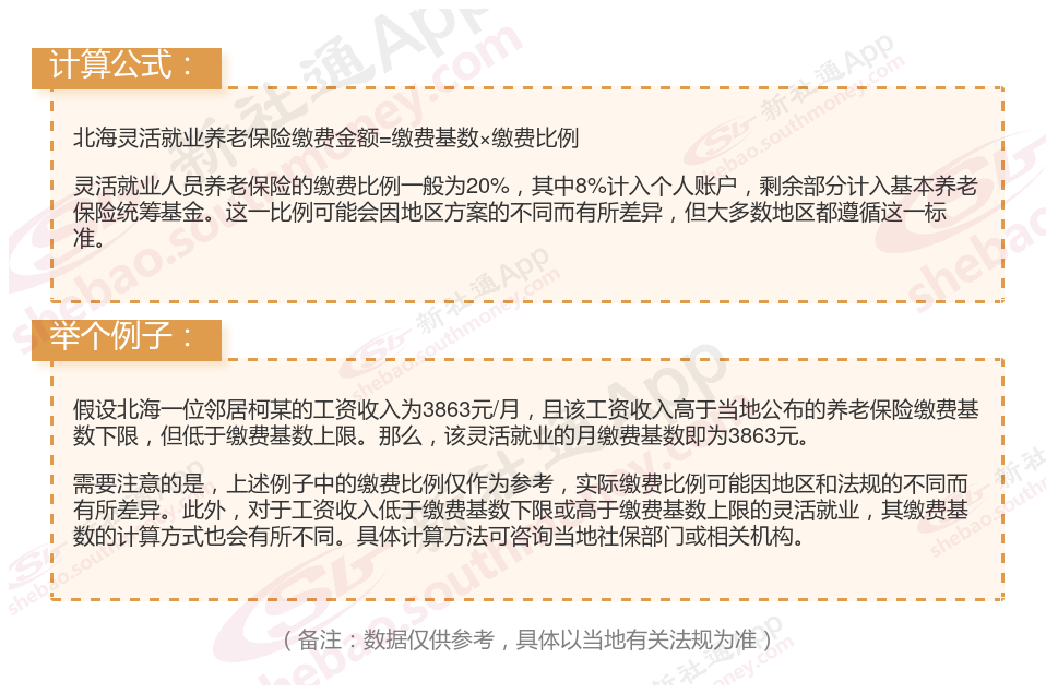 那么,北海灵活就业社保养老保险缴费价格表,2024-2025灵活就业养老保险一个月多少钱?