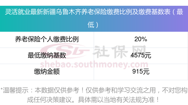 灵活就业人员的社保缴费金额受到多种因素的影响,包括个人收入、缴费基数、缴费比例以及所在地区的具体方案。那么,新疆乌鲁木齐2024-2025灵活就业养老保险社保缴费价格表,灵活就业养老保险一个月多少钱?下面随新社通小编一起来看看详情吧。