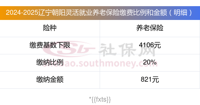 据新社通app显示,辽宁朝阳灵活就业人员养老缴费基数2024-2025年最新标准如下: