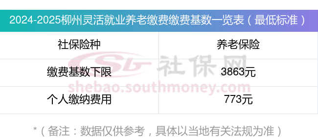 据新社通app显示,柳州灵活就业养老保险最低缴费基数为:3863元;个人的缴费比例分别为:20%;
