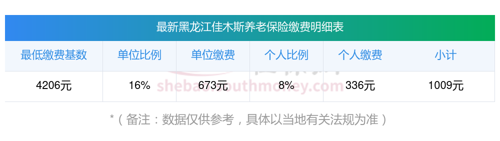 黑龙江佳木斯养老保险最低缴费基数:4206元;