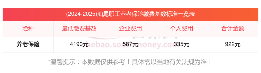 据新社通app获悉,汕尾的养老保险缴费金额因个人情况而异,包括个人缴费基数、缴费比例等因素。以下是一些参考信息: