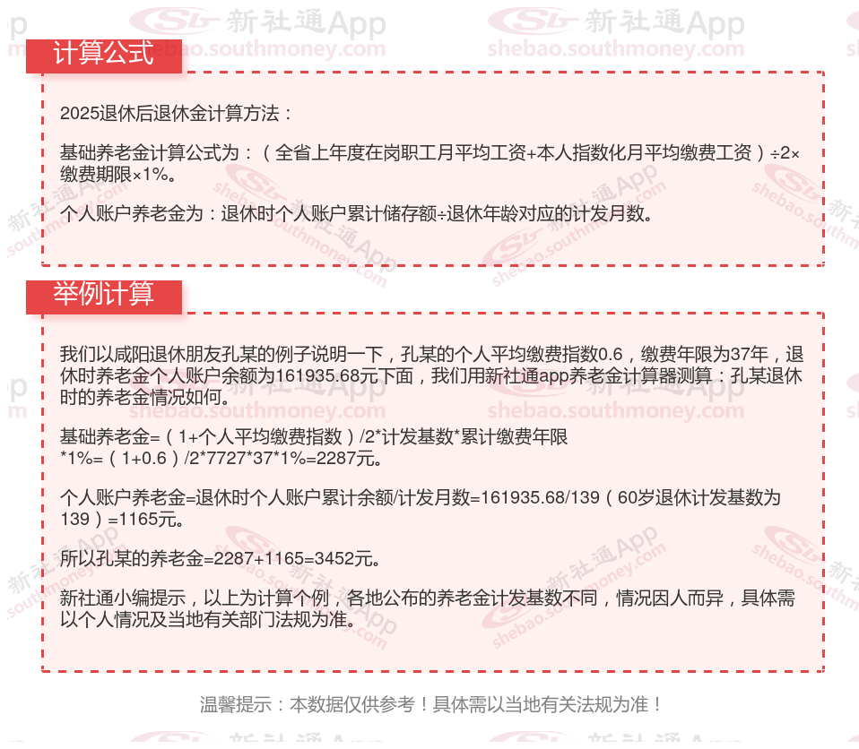 咸阳养老金计算公式2025年计算方法(在线计算器)