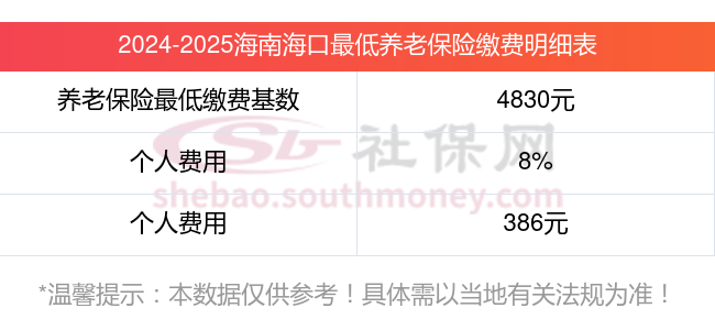 据新社通app显示,海南海口2024-2025企业职工养老保险的缴费基数为:4830元。