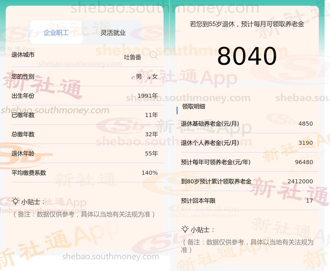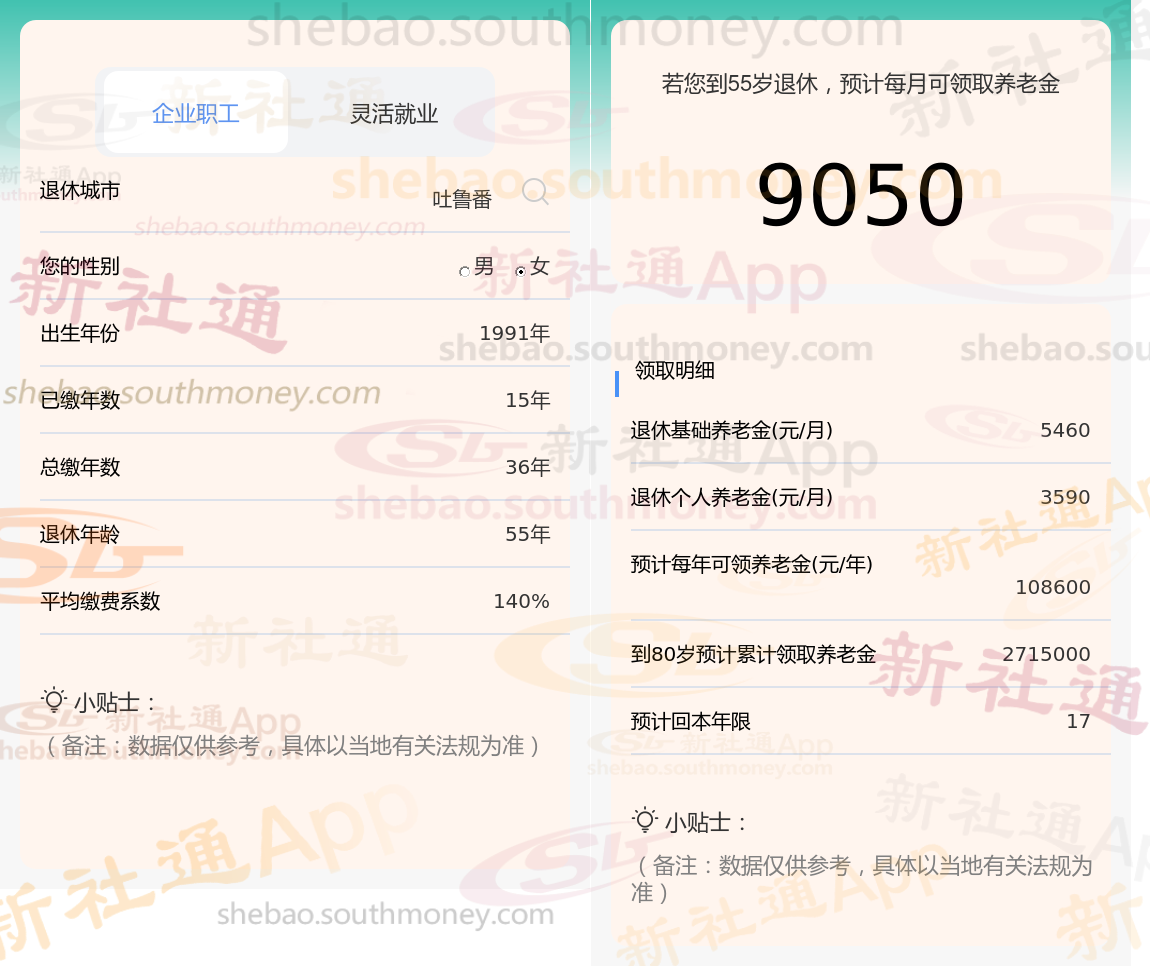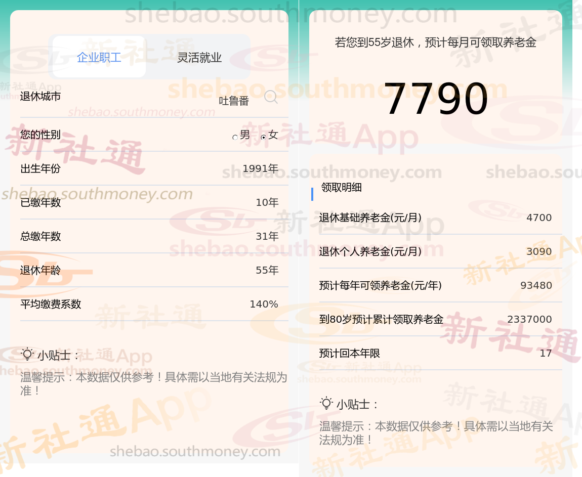 》点击新社通app养老金计算器,快算算你的养老金够不够花!