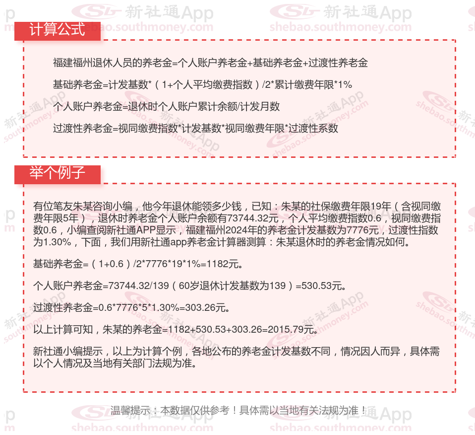 福建福州养老保险退休能领多少钱?(在线计算举例说明)