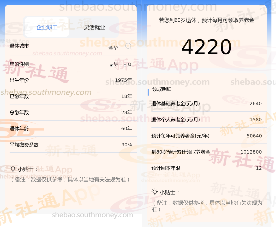 通过新社通APP-养老金计算所得:退休城市、出生年份、退休年龄、缴费系数都相同的情况下,社保缴费年限累计30年时,计算如下: