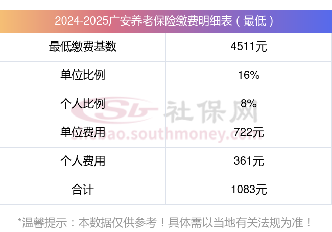 另外,需要注意的是,这些缴费标准可能会随着时间和方案的变化而调整。为了获取最新的广安职工养老保险缴费标准信息,建议查阅相关消息或咨询当地社保部门。