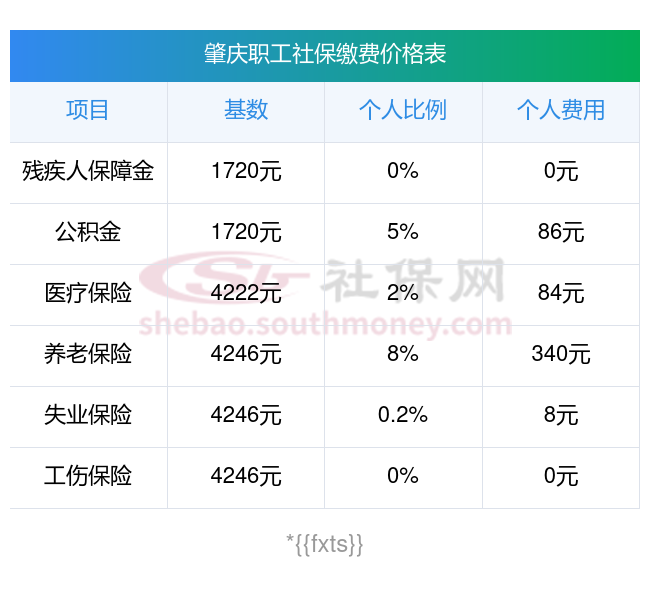 肇庆社保缴纳明细如下: