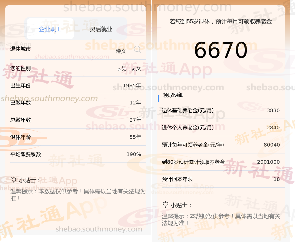 通过新社通APP-养老金计算所得:退休城市、出生年份、退休年龄、缴费系数都相同的情况下,社保缴费年限累计27年时,计算如下: