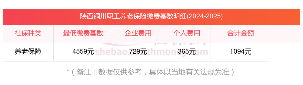 据新社通app获悉,陕西铜川的养老保险缴费金额因个人情况而异,包括个人缴费基数、缴费比例等因素。以下是一些参考信息: