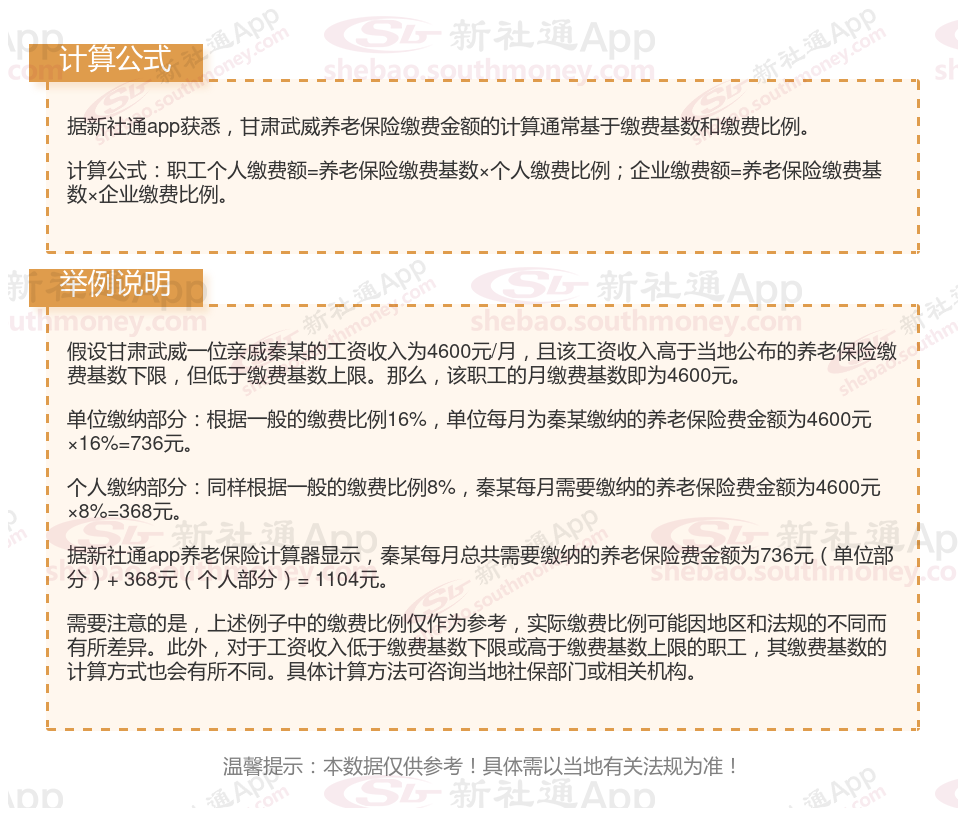 据新社通app显示,甘肃武威2023-2025企业职工养老保险的缴费基数为:4600元。
