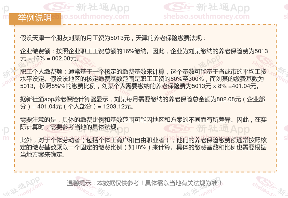 据新社通app显示,天津企业职工养老保险的缴费基数为:5013元。
