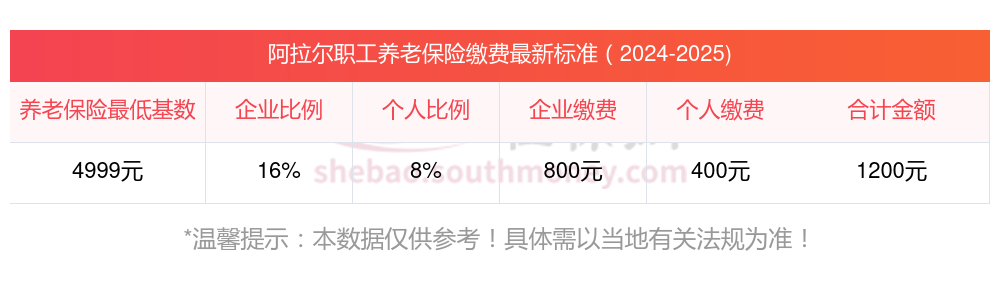 另外,需要注意的是,这些缴费标准可能会随着时间和方案的变化而调整。为了获取最新的阿拉尔职工养老保险缴费标准信息,建议查阅相关消息或咨询当地社保部门。