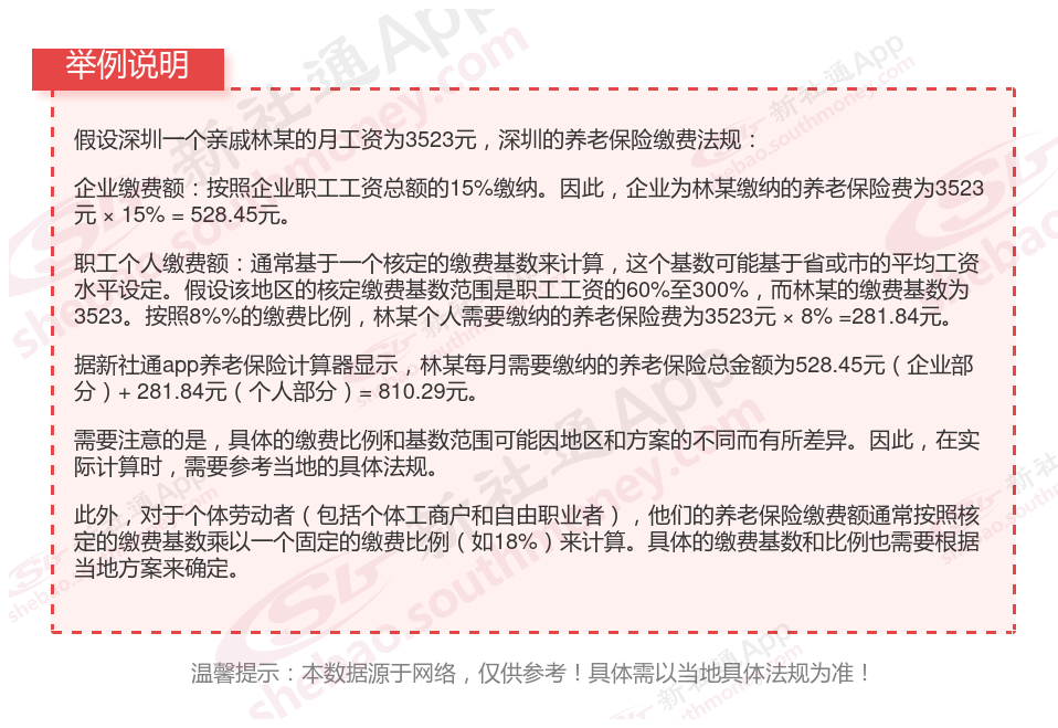 据新社通app显示,深圳养老保险缴费基数2024-2025年最新标准如下: