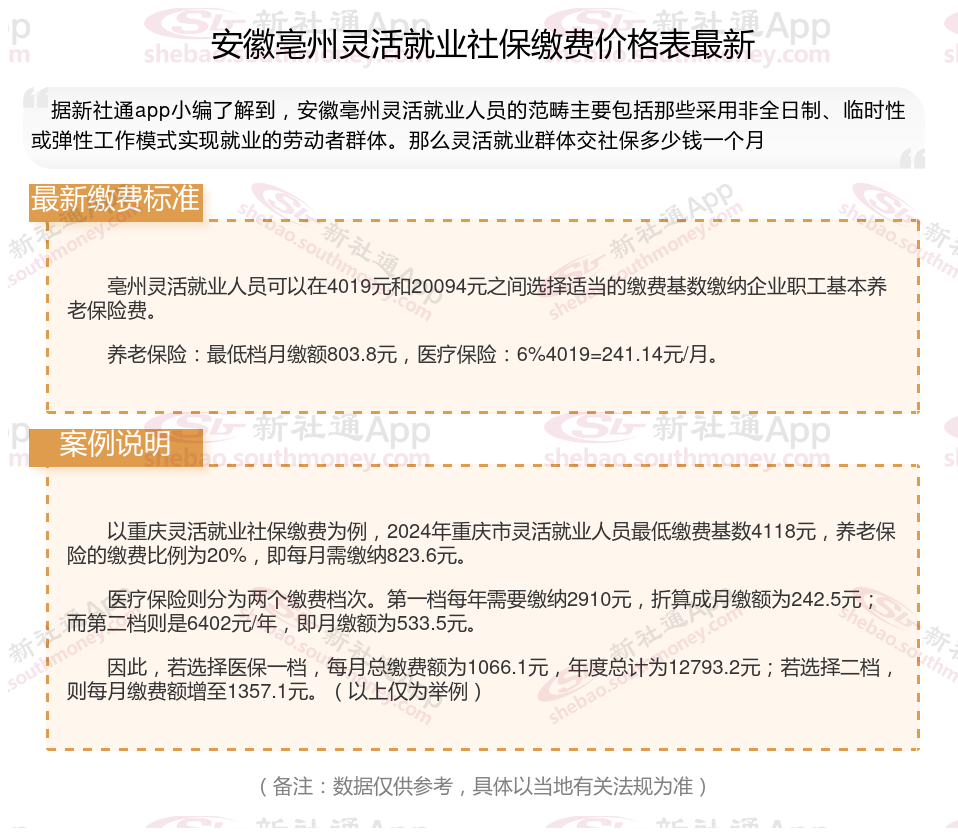 安徽亳州灵活就业人员基本养老保险缴费基数暂按不低于4227元;