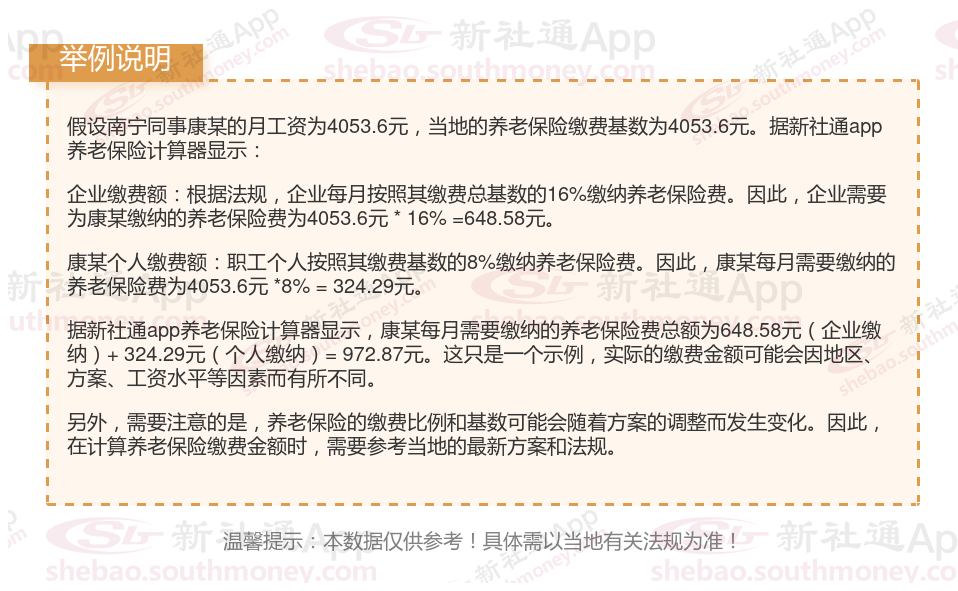 据新社通app显示,南宁职工养老保险缴费基数2024-2025年最新标准如下: