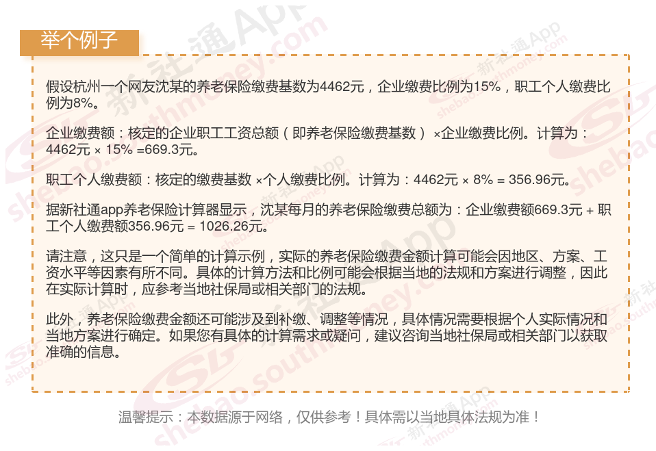 据新社通app显示,杭州职工养老缴费基数2024-2025年最新标准是多少,杭州养老保险基数明细如下: