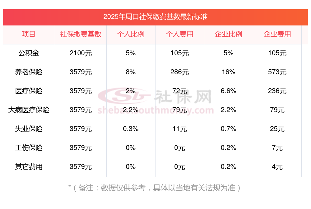 2025年单位员工参保缴费3436元,下表是周口社保费用明细参考,根据社保小编-社保缴费查询工具提供的最新数据如下:
