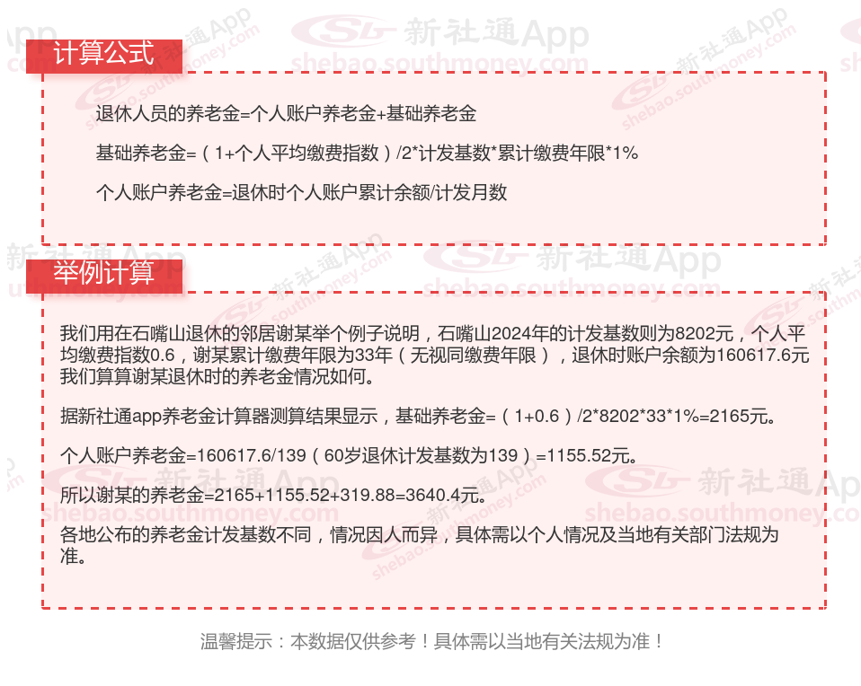 石嘴山养老金计算公式2024年计算方法(在线计算器)