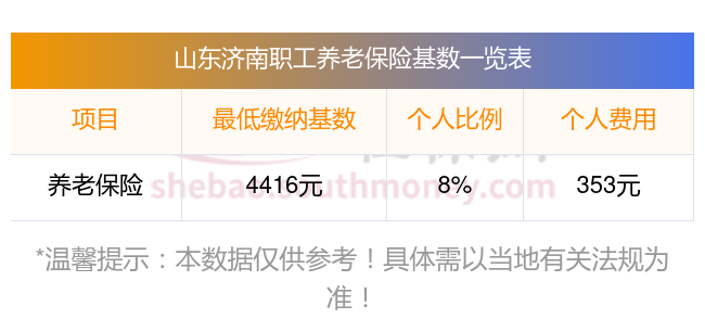据新社通app获悉,山东济南养老保险的缴费金额计算通常涉及缴费基数和缴费比例两个因素。以下是一个基于虚构数据的计算举例说明: