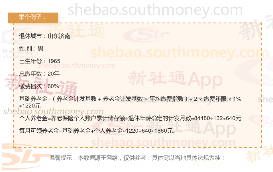对于个人养老金部分,它是根据个人养老金账户中的积累总额来计算的。在这个例子中,个人养老金账户的总额是84480元。而计发月数则根据退休年龄有所不同。所以,个人养老金的大致数额就是84480元除以132个月,结果大约是640元。