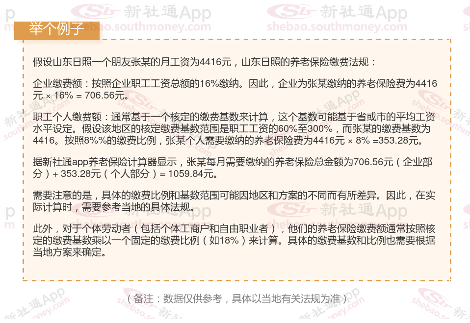 假设山东日照某地区的这个职工的养老保险缴费基数是4416元。