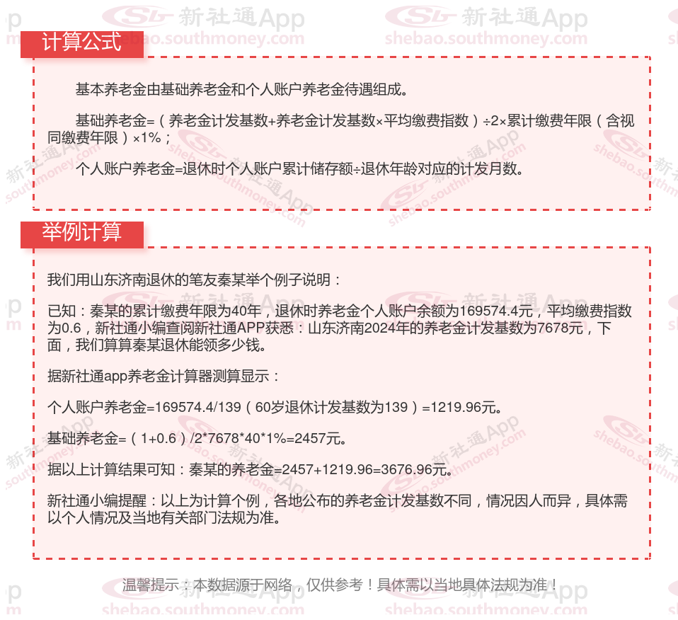 山东济南养老保险退休能领多少钱?(在线计算举例说明)