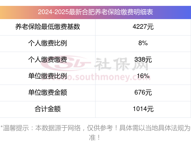 据新社通小编了解,养老保险是一项基本社会保险,养老保险分为城乡居民养老保险和职工养老保险两种。城乡居民养老保险是按年缴费的,由用户自费;职工养老保险是按月缴费的,有单位和职工共同缴费。那么合肥2024-2025年养老保险单位和个人缴费比例分别是多少?下面随新社通app小编一起来了解一下。