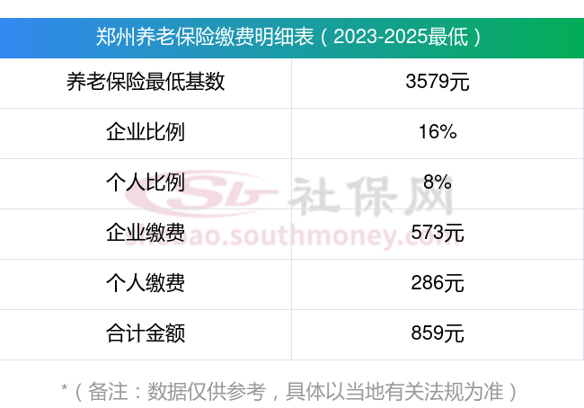 据新社通app显示,郑州职工养老缴费基数2023-2025年最新标准是多少,郑州养老保险基数明细如下: