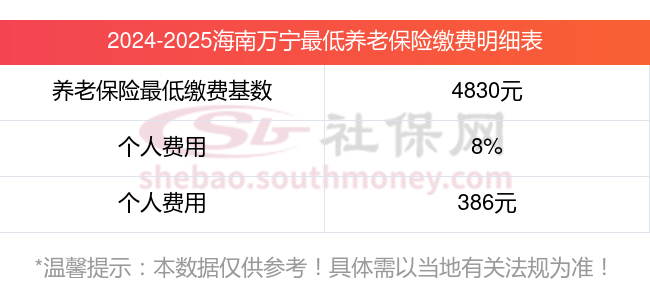据新社通app显示,海南万宁养老保险缴费基数2024-2025年最新标准如下: