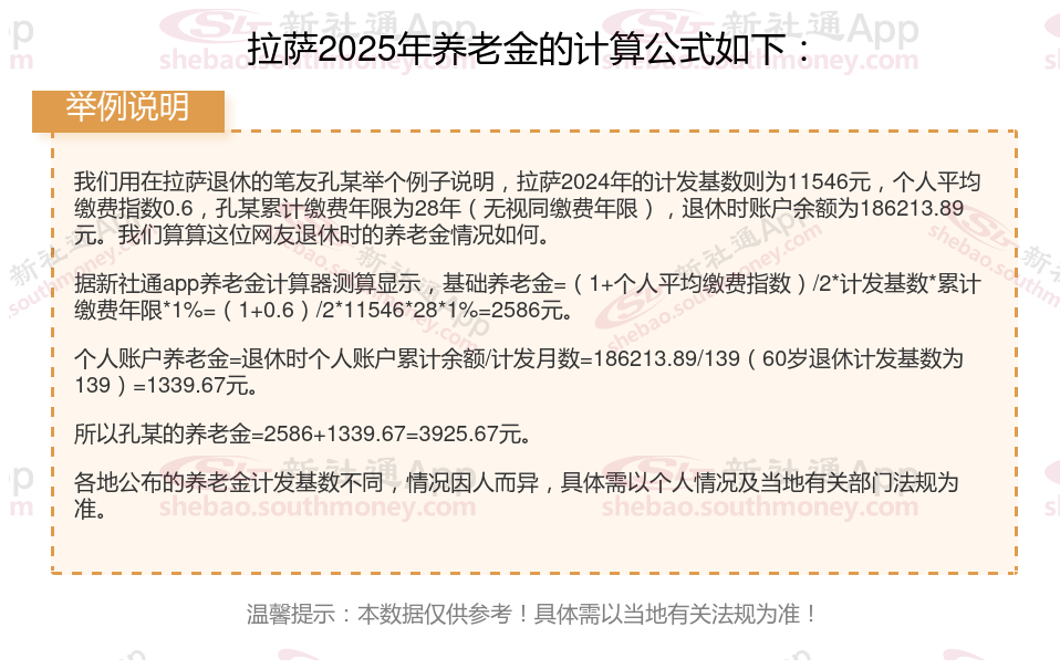 假设拉萨邻居刘某的工资总额为6474元,那么刘某的缴费基数就是6474元的60%到300%之间。如果他选择按照缴费基数为6474,据新社通app养老保险计算器测算显示,刘某个人缴费额就是6474元*20%,等于1294.8元。