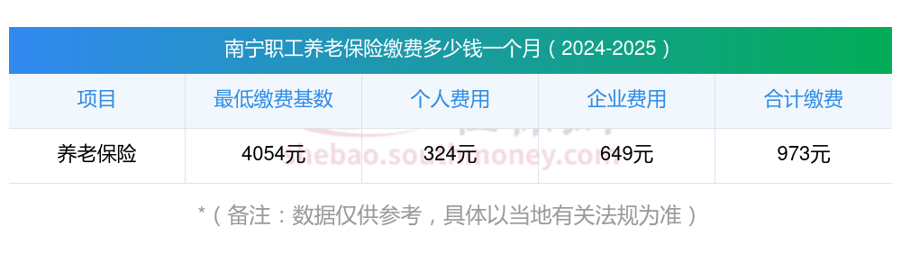 据新社通app获悉,南宁养老保险缴费金额的计算主要依据缴费基数和缴费比例。以下是一个具体的计算举例: