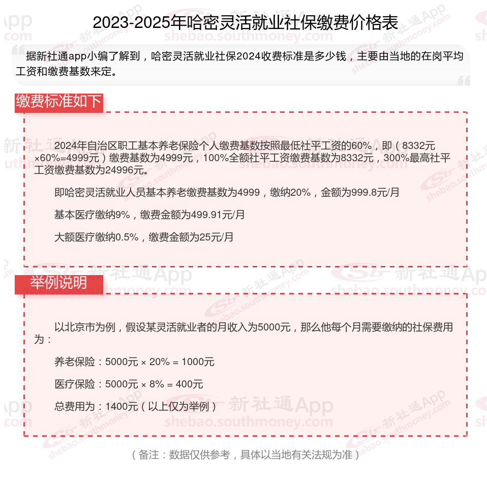 据新社通app数据显示,哈密灵活就业养老缴费基数明细如下: