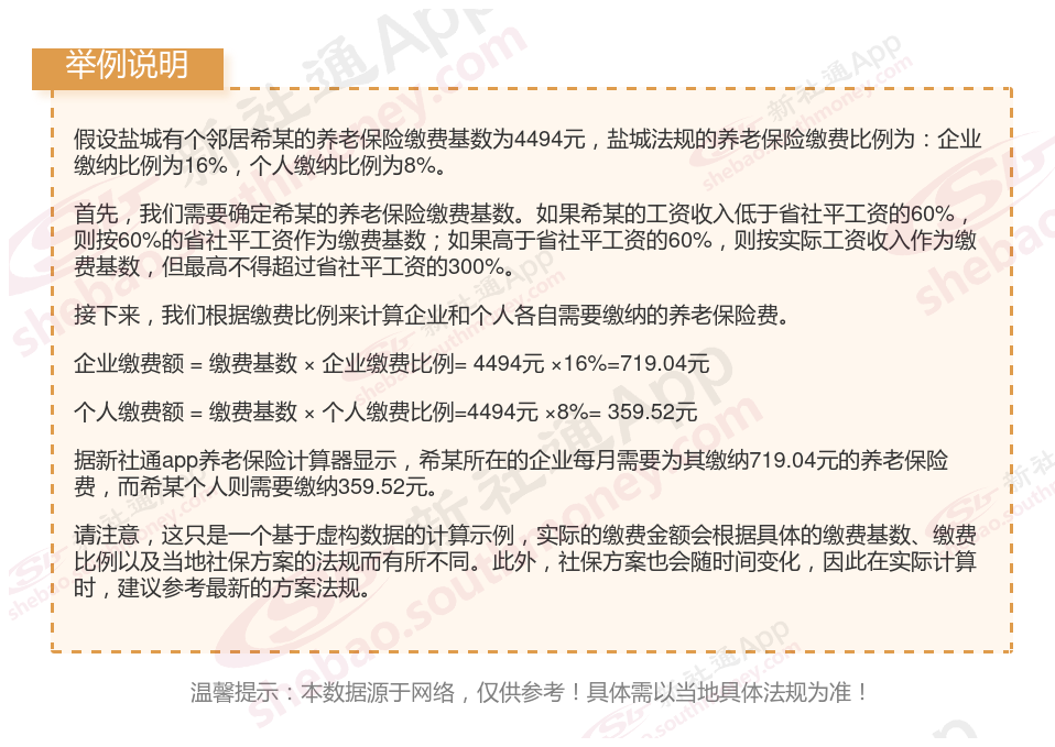 盐城养老保险缴费基数2023-2024最新标准,一个月要交多少钱?