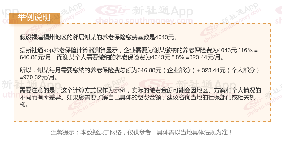 据新社通app显示,福建福州职工养老缴费基数2024-2025年最新标准是多少,福建福州养老保险基数明细如下: