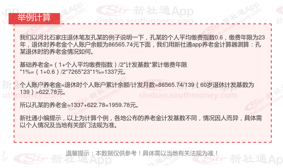 据新社通app养老保险计算器显示:养老保险费=养老保险缴费基数×单位缴费比例+养老保险缴费基数×个人缴费比例。