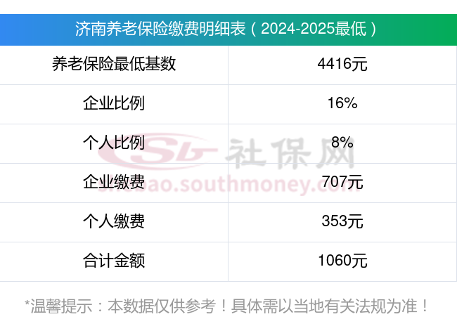 据新社通app显示,济南职工养老缴费基数是多少,2024-2025年济南养老保险基数明细如下: