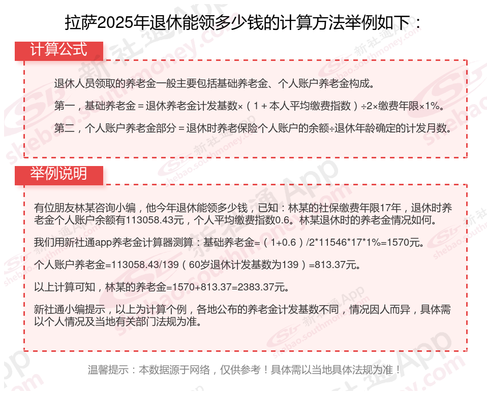 拉萨社保退休能领多少钱?(在线计算举例说明)