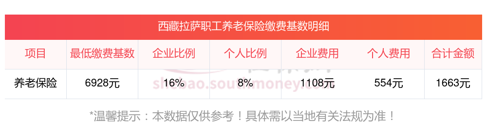 据新社通app获悉,职工养老保险是基本养老保险体系的重要组成部分,它采取的是单位与个人共同缴费的机制。一般而言,个人的缴费比例为8%。在常规情况下,单位所缴纳的养老保险费用会直接汇入养老保险统筹基金账户中,用于整个养老保险体系的资金积累和运作。那么,西藏拉萨养老保险2024-2025年缴费标准是多少?下面随新社通app小编一起来看看详情吧。