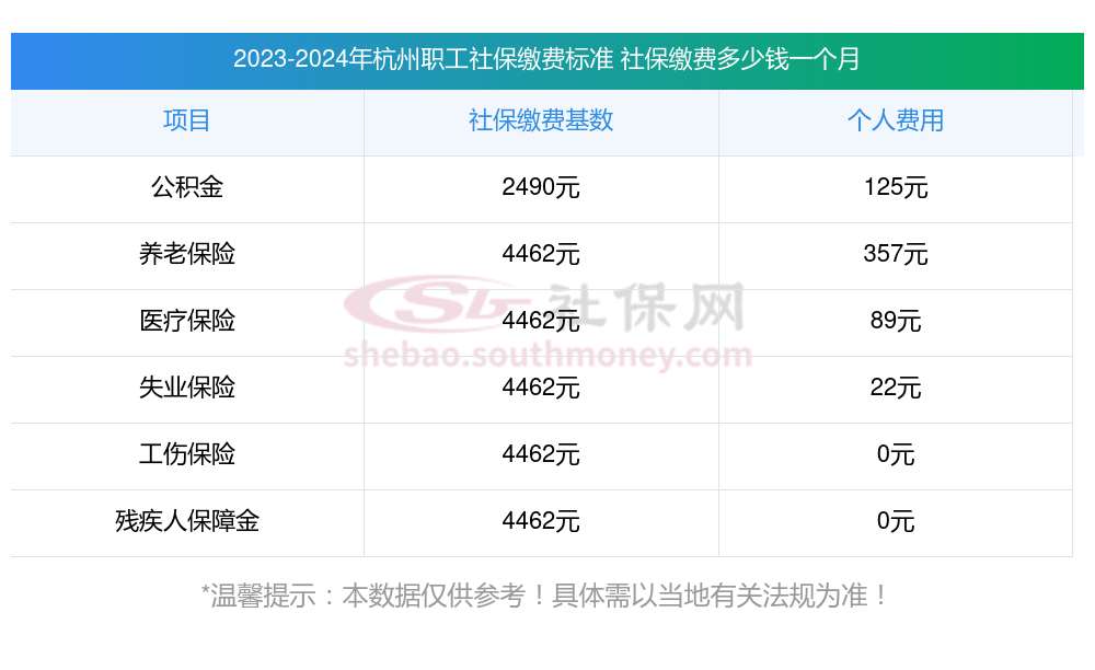 杭州社保个人缴费比例是多少?和社保君一起来看看2024-2025年杭州最低社保费用明细参考,新社通app-社保缴费查询工具提供的最新数据如下: