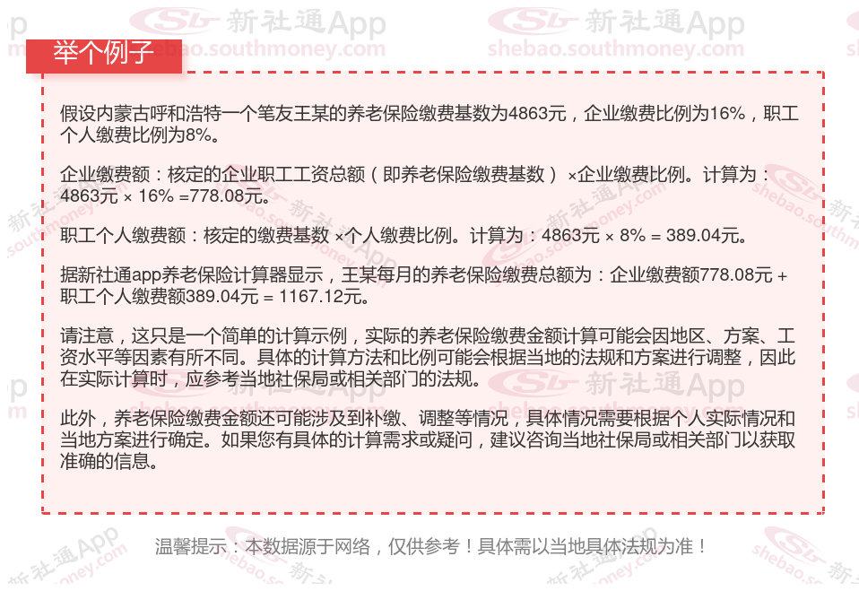 据新社通app显示,内蒙古呼和浩特企业职工养老保险的缴费基数为:4863元。